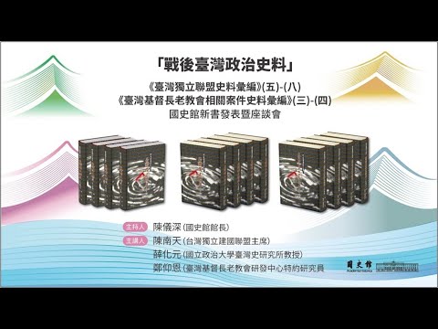 「戰後臺灣政治史料」《臺灣獨立聯盟史料彙編》(五)-(八)、《臺灣基督長老教會相關案件史料彙編》(三)-(四)新書發表暨座談會