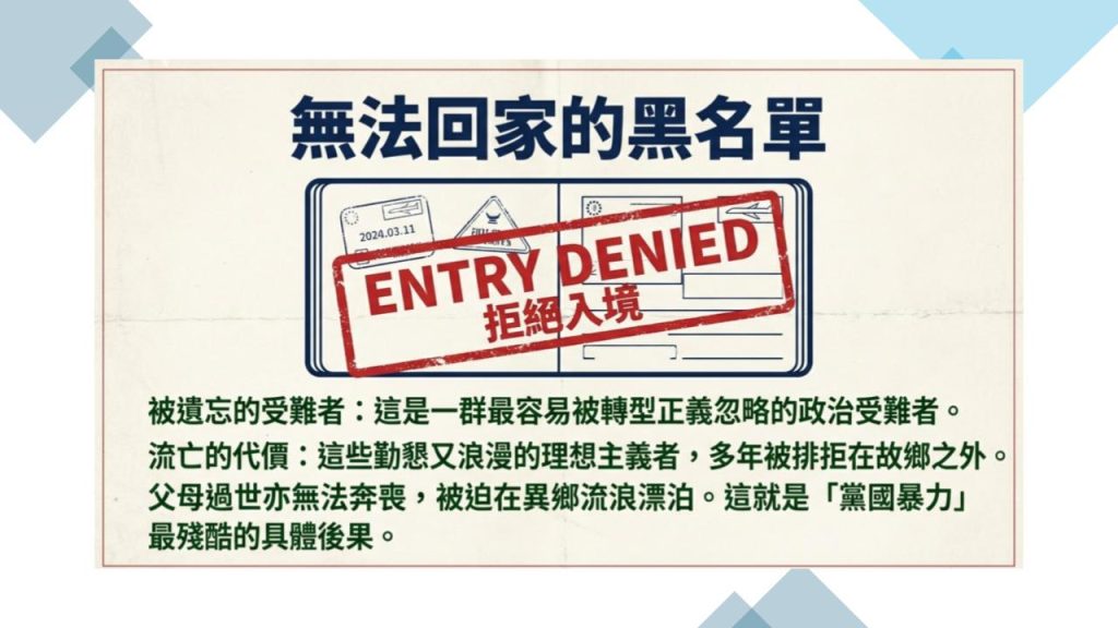 無論如何,我們很肯定國史館整理的這一批中國國民黨黨國體制下海外監控檔案,這就是迫害的證據。同時也提醒我們,海外監控如此,台灣島內監控定是變本加厲。而這些被國民黨國所監控海外黑名單,這些勤懇又浪漫的理想主義者,多年被排拒在故鄉台灣之外,父母過世亦無法奔喪,是台灣轉型正義推動下,最容易被忽略的政治受難者。